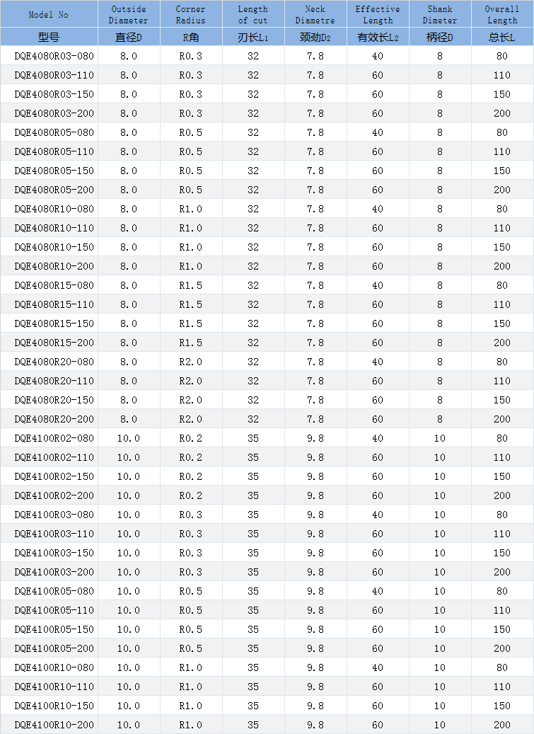 四刃圓鼻銑刀-石墨圓鼻銑刀